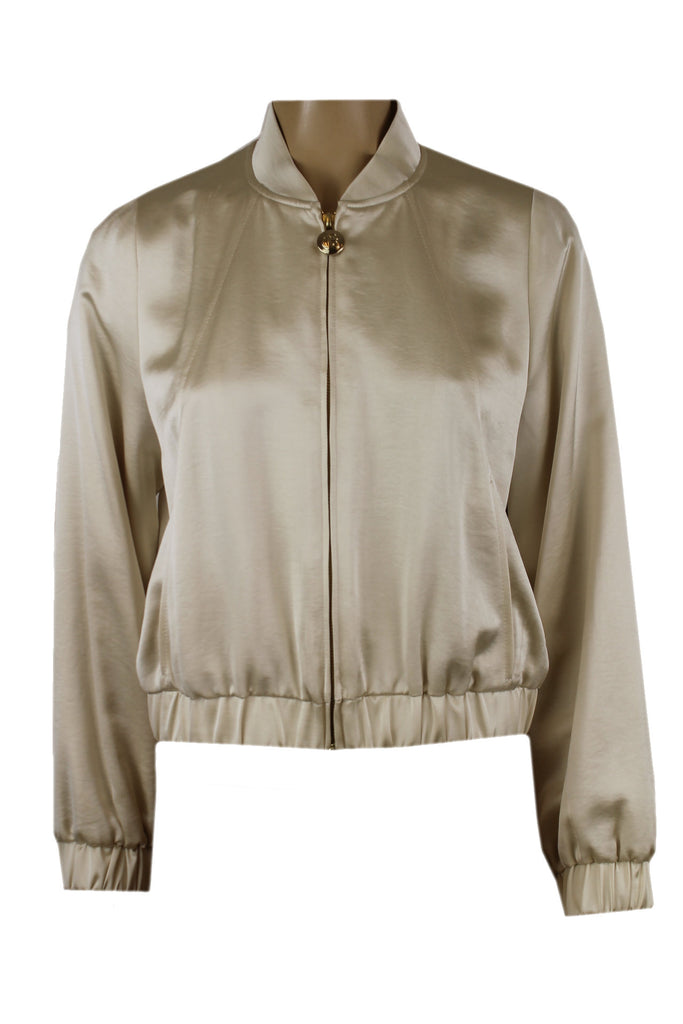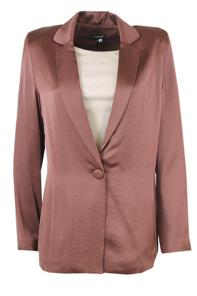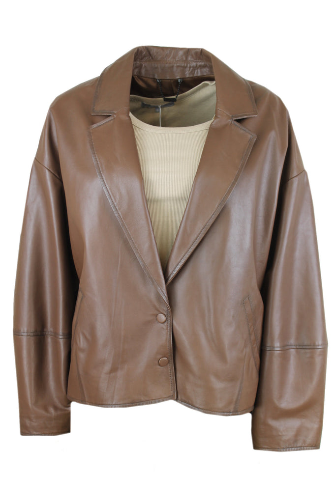 Caroline Biss leren jasje verkrijgbaar in de kleuren groen en bruin.