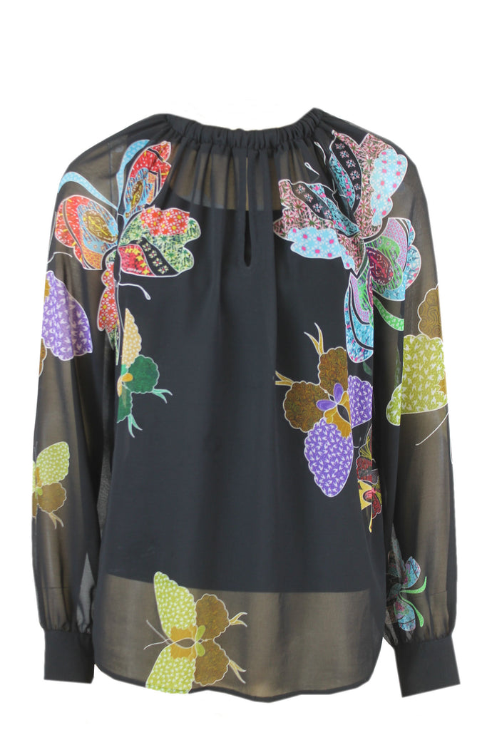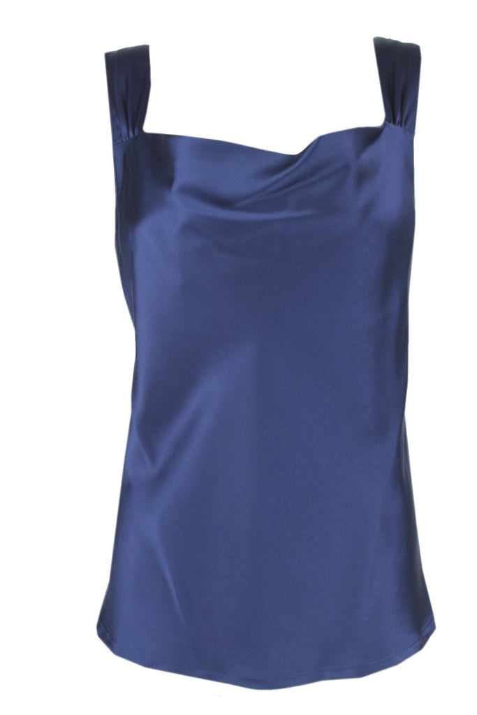 Caroline Biss luxe top in de kleuren zwart en donkerblauw.
