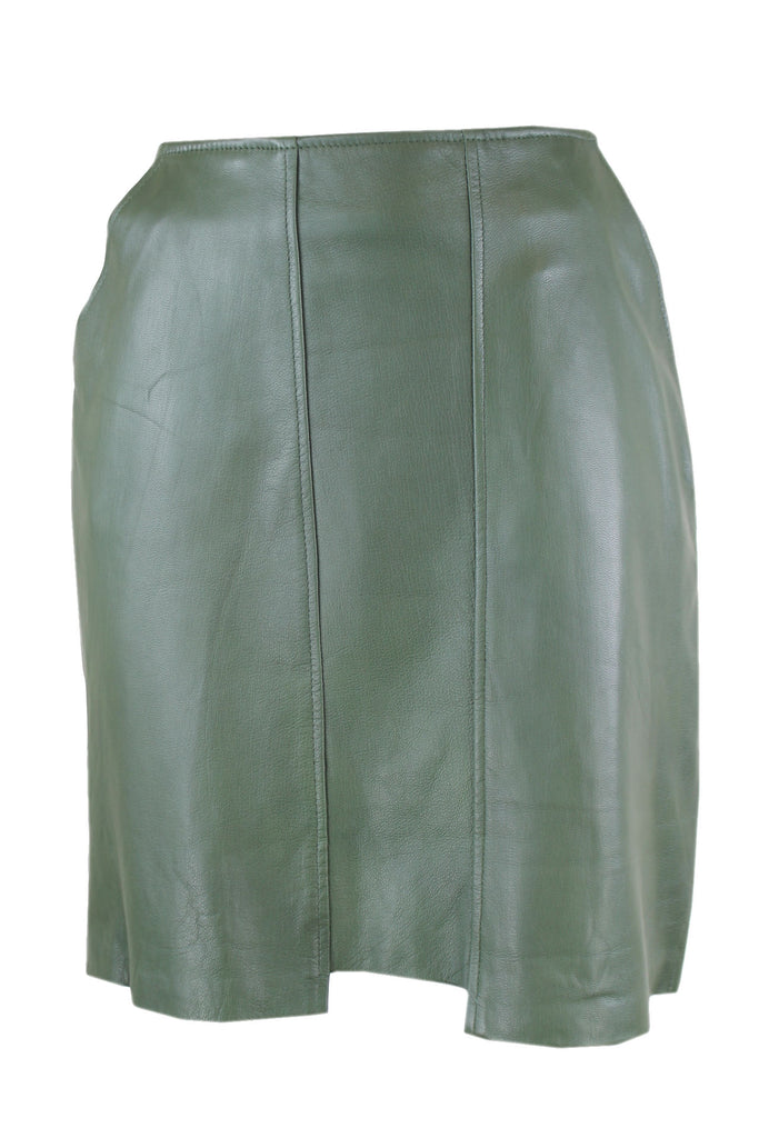 Caroline Biss leren rok in de kleuren groen en bruin.