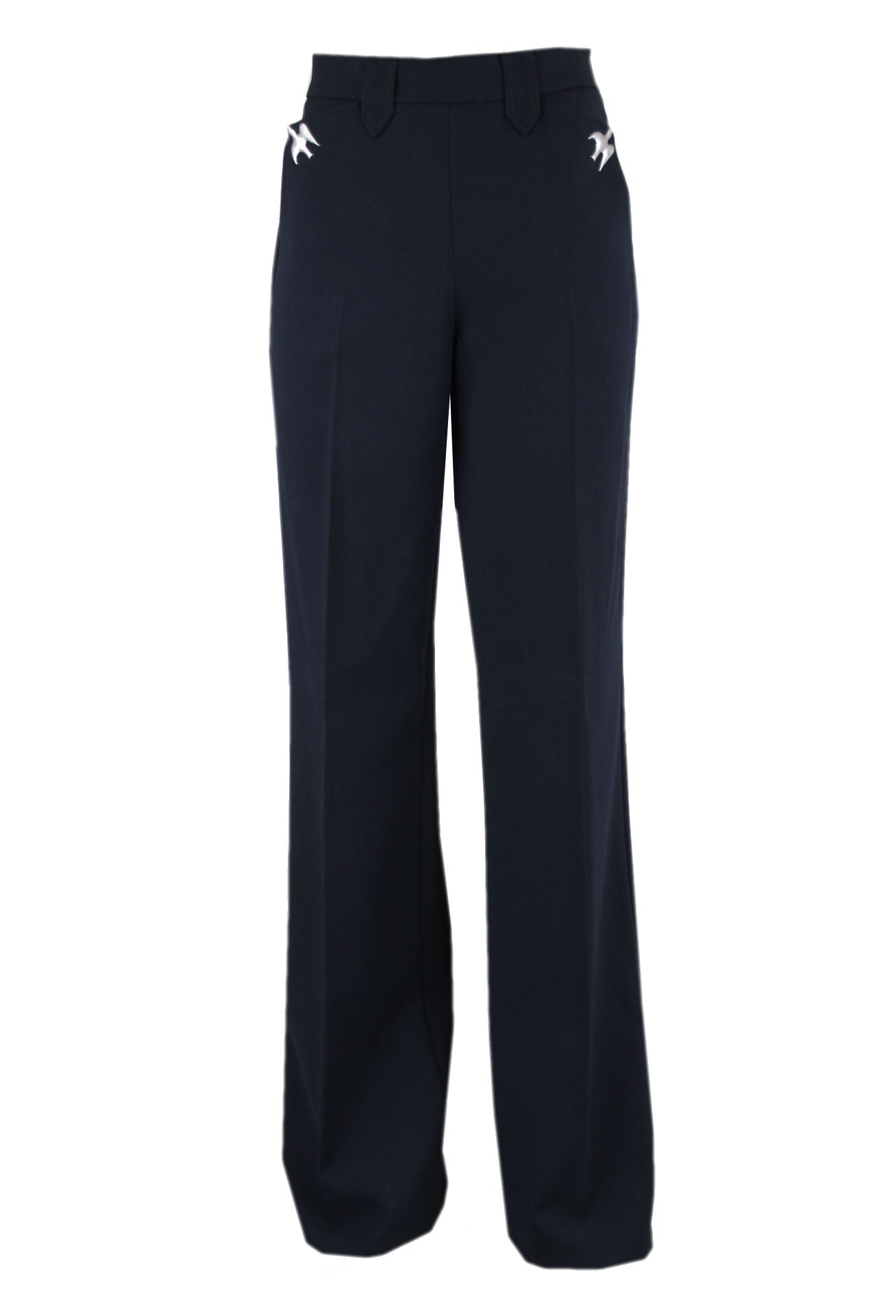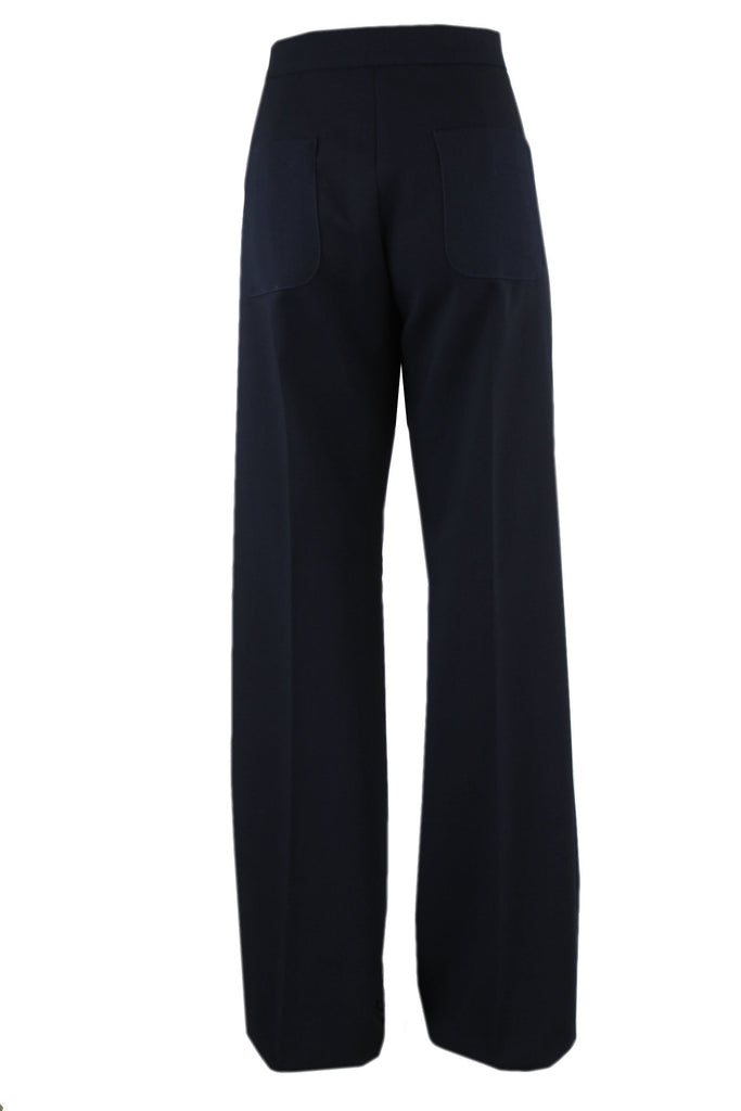Caroline biss donkerblauwe flared broek, diverse zakken, twee luxe drukknopen bij de zakken aan de voorkant