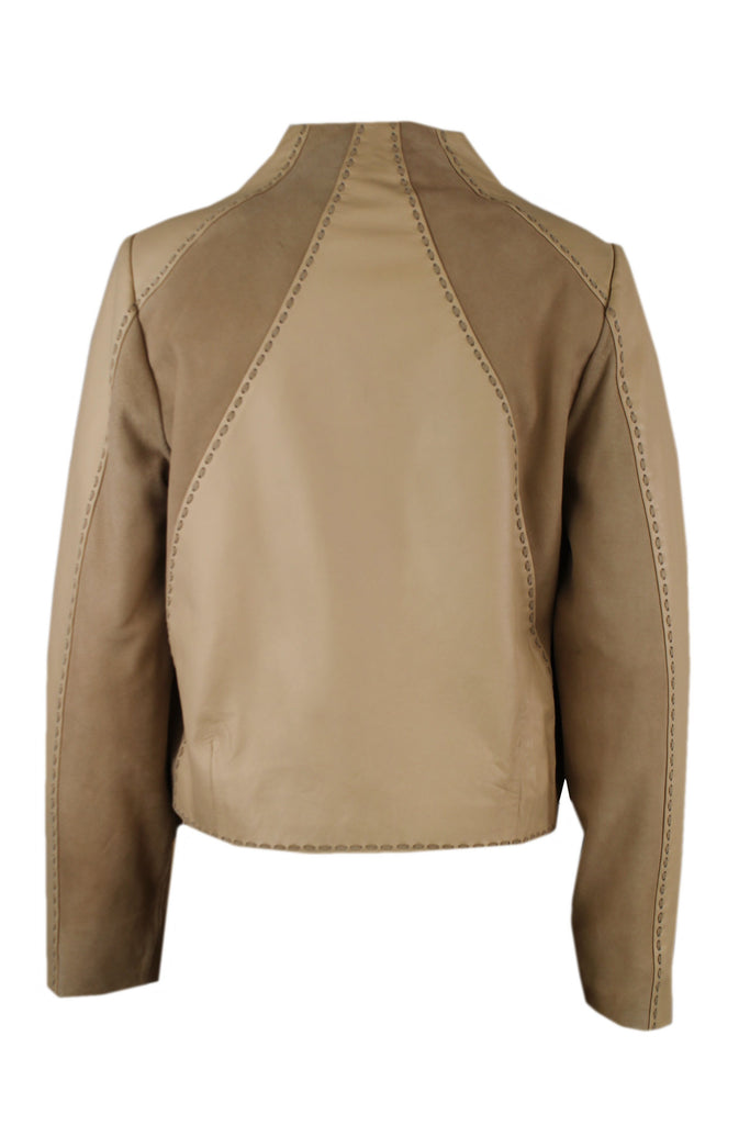 Caroline Biss crèmekleurige leren jas, een goudkleurige rits aan de voorkant, gevoerd, schuine zakken
