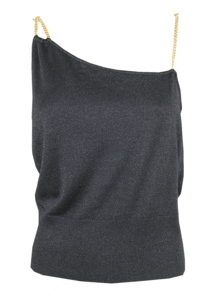 De zwart top heeft goudkleurige kettinkjes en de blauwe zilverkleurige!