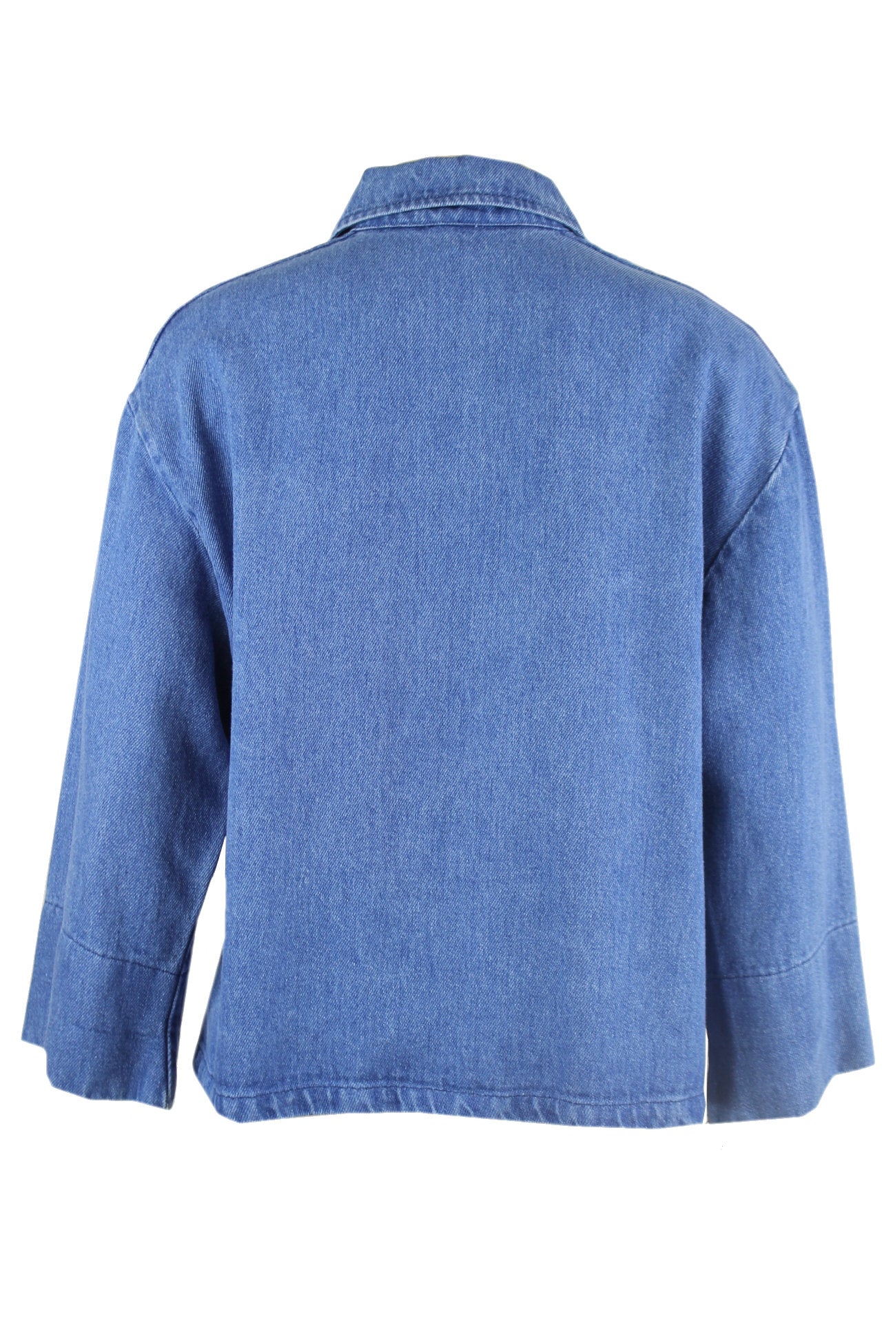 Caroline Biss denim blouse, vier zilverkleurige knopen aan de voorkant, 7/8 mouwen, ruim model met splitjes aan de zijkanten